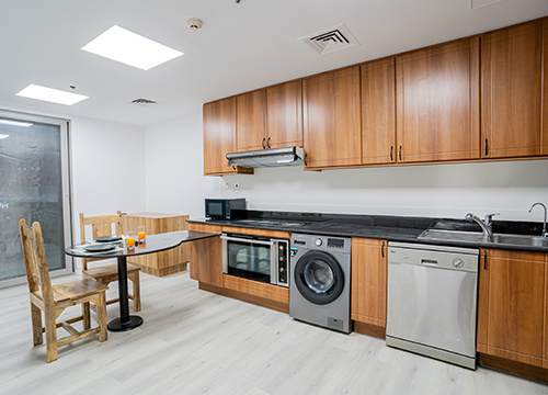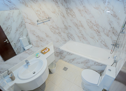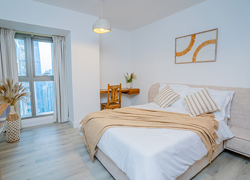 Feel pampered in ourt indoor and outdoor pools, gymnasium facilities, and a beautiful lounge on the 97th floor. Our apartment boasts a fully outfitted kitchen that allow visitors to immerse themselves in an unparalleled culinary experience. We provide complimentary Wi-Fi services for seamless connectivityduring your time. The 3.5 BHK setting is equipped with air conditioning, washer, and iron facilities to ensure every convenience is at your fingertips.
